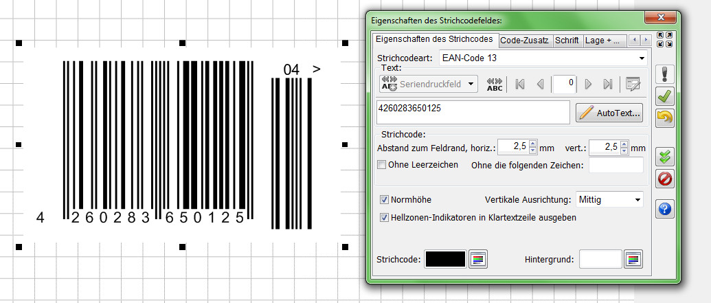 Die darzustellenden Ziffern bzw. Zeichen können entweder direkt angegeben werden oder aus Seriendruckfeldern stammen.