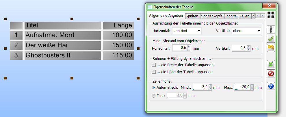 Mit dieser Objektart werden Informationen tabellarisch ausgegeben.