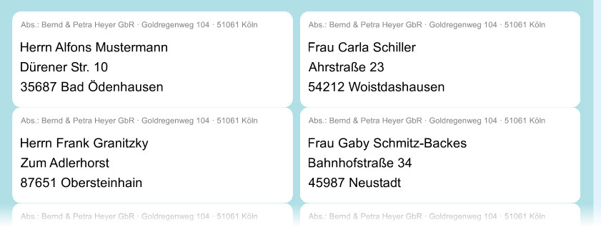 Mit der eingebauten Seriendruck-Funktion in Heyer's Etiketten-Studio besteht die Möglichkeit u.a. Adressaufkleber zu bedrucken.