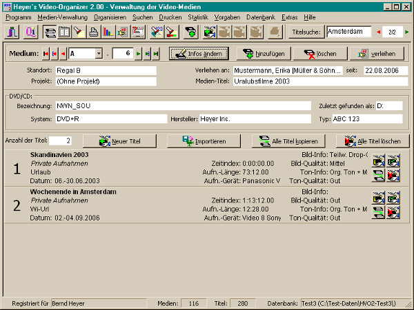 In der Medien-Verwaltung kann gezielt der Inhalt eines Mediums angesehen oder geändert werden. Im Bild oben ist die Ansicht bei einer DVD/CD zu sehen.