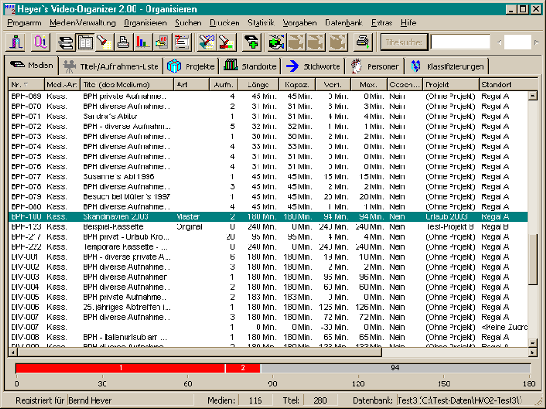 In dieser Funktionen werden alle erfassten Medien aufgelistet. Die Liste kann durch Klick auf den jeweiligen Spaltenkopf entsprechend sortiert werden.